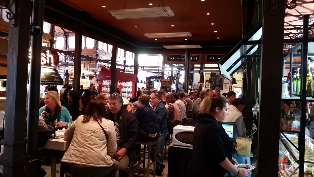 בקומה העליונה של המבנה ממוקמת מסעדה גדולה עם נוף מרהיב סביב למרפסת פתוחה. בדוכנים הקיימים בשוק ניתן לקנות אוכל טאפאס במגוון סגנונות, פירות חתוכים, המבורגרים המוכנים במקום וגם אוכל מהמזרח התיכון, הכל נראה טעים ומגניב…
