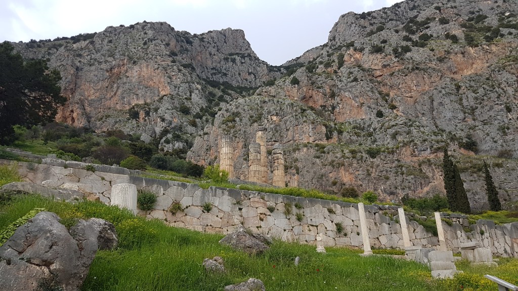 מקדש אפולו הראשון נבנה במאה ה-6 לפנה"ס ונהרס, על שרידיו נבנה מקדש נוסף במאה ה-4 לפנה"ס אשר נהרס אף הוא, ולקראת סוף המאה ה-4 לספירה נבנה מקדש נוסף במקום, אשר את שרידיו ניתן לראות עד היום באתר.