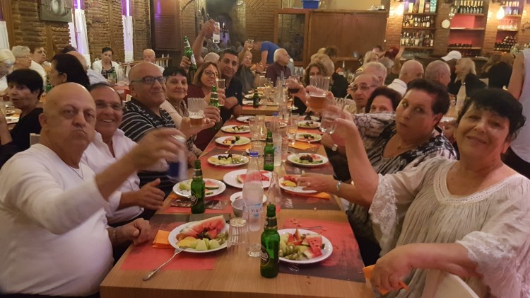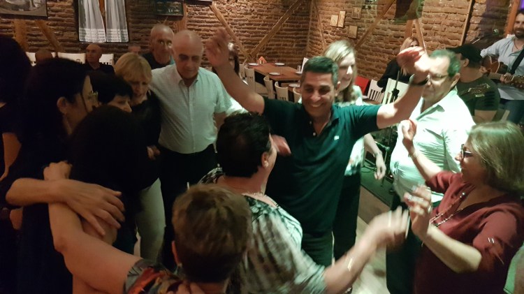 בטברנות היווניות אוכלים מאכלים מקומיים ושותים בעיקר את האוזו, ובחלקם מתקיים גם מופע פולקלור הכולל זמרים וזמרות, רקדנים ורקדניות וכמובן את נגני הבוזוקי, אל כולם מצטרף הקהל בשירה ובריקוד משחרר ומהנה. יאמאס…
