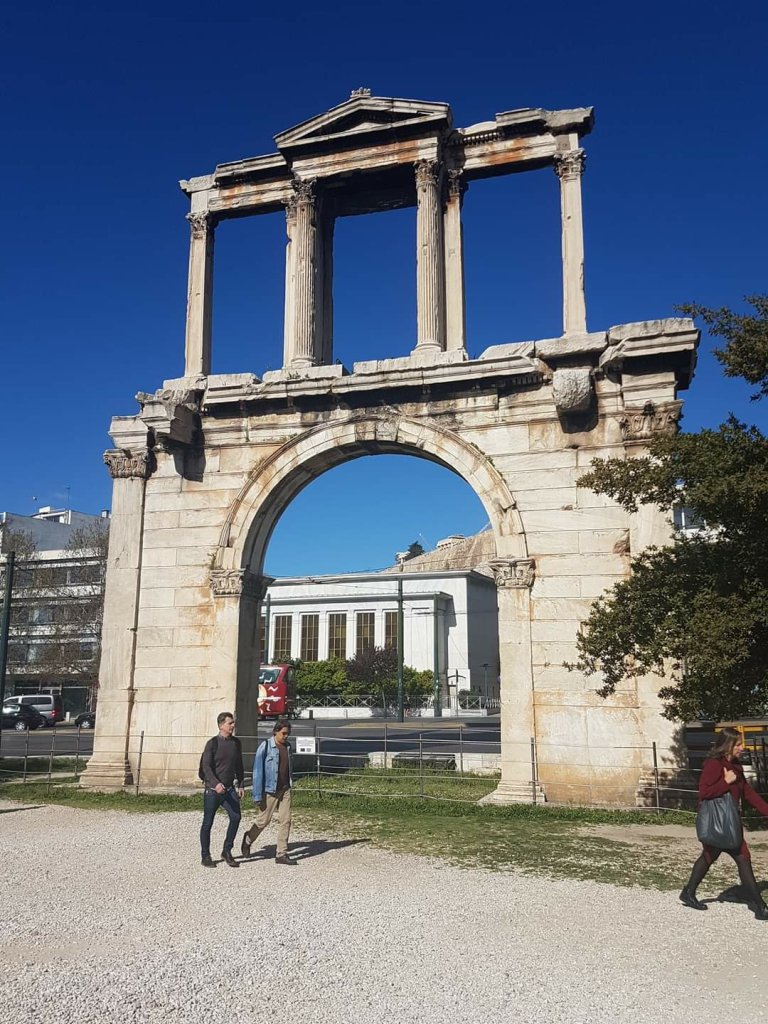 מצפון-מערב למקדש וממש לידו, עומדת קשת אדריאנוס בגובה של 18 מ' אותה בנה בשנת 132 לספירה הקיסר הרומי אדריאנוס לצורך ציון גבול העיר העתיקה ותחילת העיר הרומית החדשה. כדי למנוע כל ספק, נכתב בצד הקשת הפונה לאקרופוליס : "זו אתונה הקדומה, עירו של תזאוס", ובצידה השני של הקשת נכתב: "זוהי עירו של אדריאנוס, ולא של תזאוס".