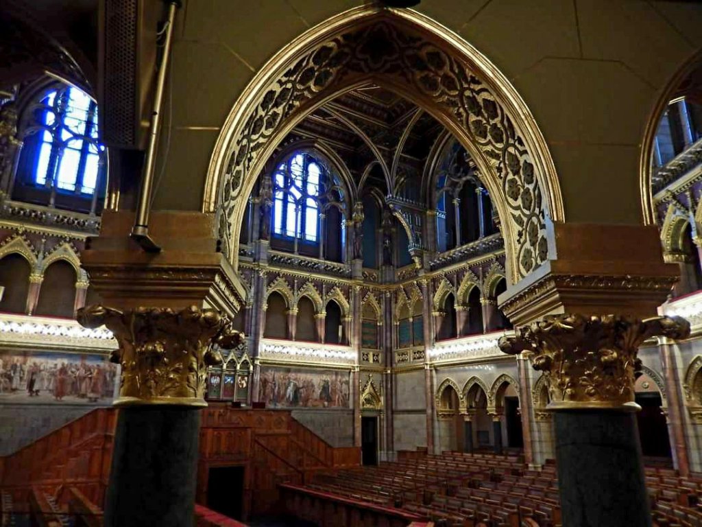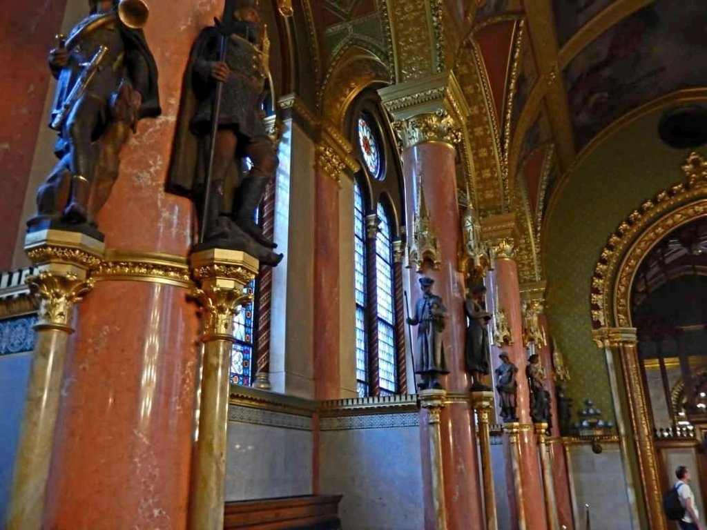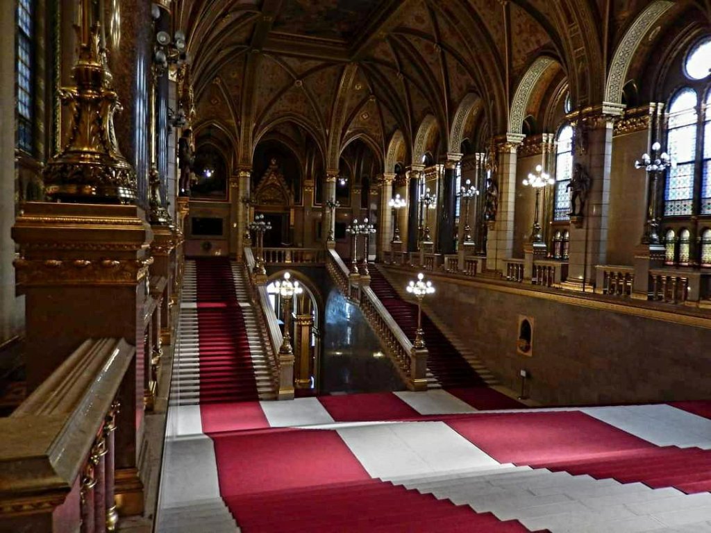 מתחת לכיפה הגדולה של הבניין מוצגים תכשיטי הכתר אשר הועברו לכאן בשנת 2000. הכתר המלכותי הנמצא בבניין נחשב לכתרו של המלך אישטוון, ולידו נמצאים שומרים הדואגים לשמור על סמלים אלו. (אולם זה הוא האולם היחידי בו אסור לצלם במהלך הביקור בפרלמנט).