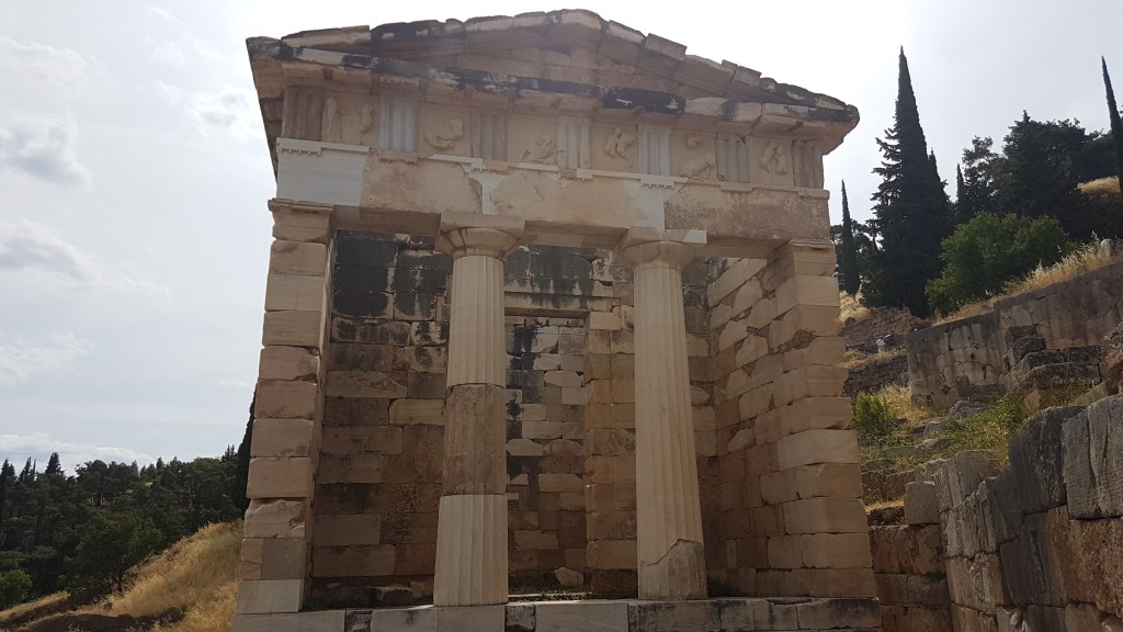 העיר דלפי נמצאת במרכז יוון כ- 180 ק"מ מהעיר אתונה ולמרגלות הר הפרנסוס. תחילת ההתיישבות במקום החלה לפני כ- 2500 שנים בכפר קטן שנקרא קסטרו. עד שנת 1892 היה האתר הארכיאולוגי גל חורבות הקבור מתחת לכפר, בשנה זו הוחלט להעביר את הכפר 1.5 ק"מ מערבה (העיר דלפי של היום) ולחשוף את האוצר הקבור מתחת למבני הכפר.