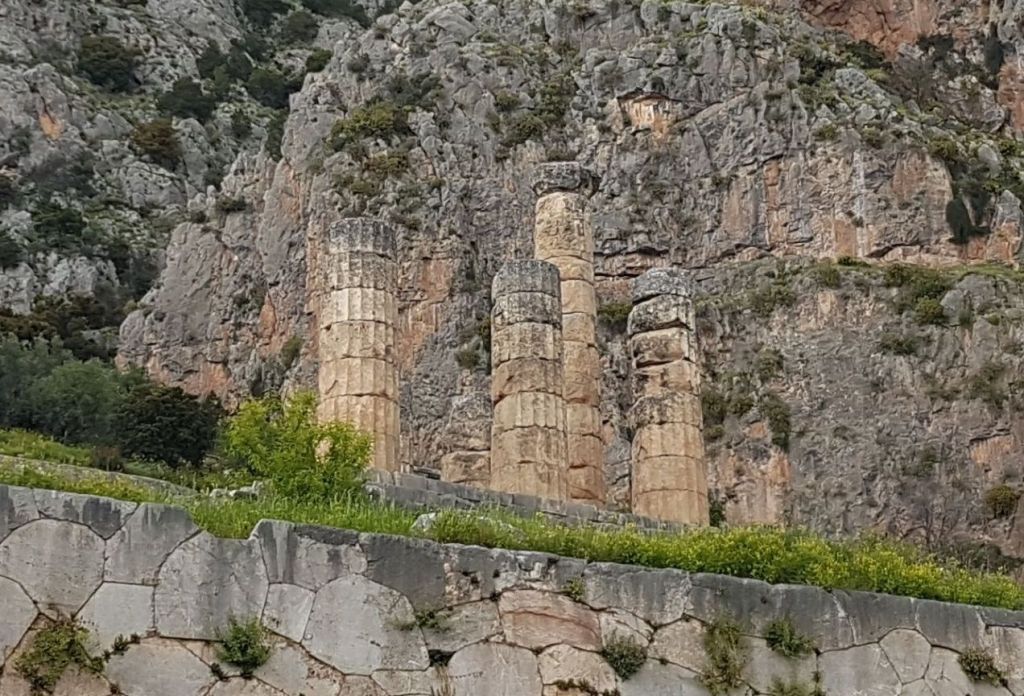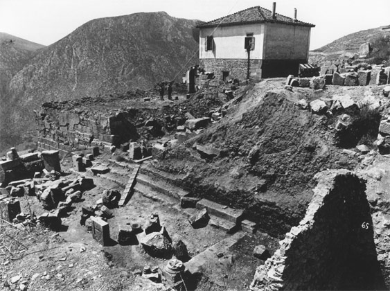 מקדש אפולו הראשון נבנה במאה ה-6 לפנה"ס ונהרס, על שרידיו נבנה מקדש נוסף במאה ה-4 לפנה"ס אשר נהרס אף הוא, ולקראת סוף המאה ה-4 לספירה נבנה מקדש נוסף במקום, אשר את שרידיו נראה היום באתר.