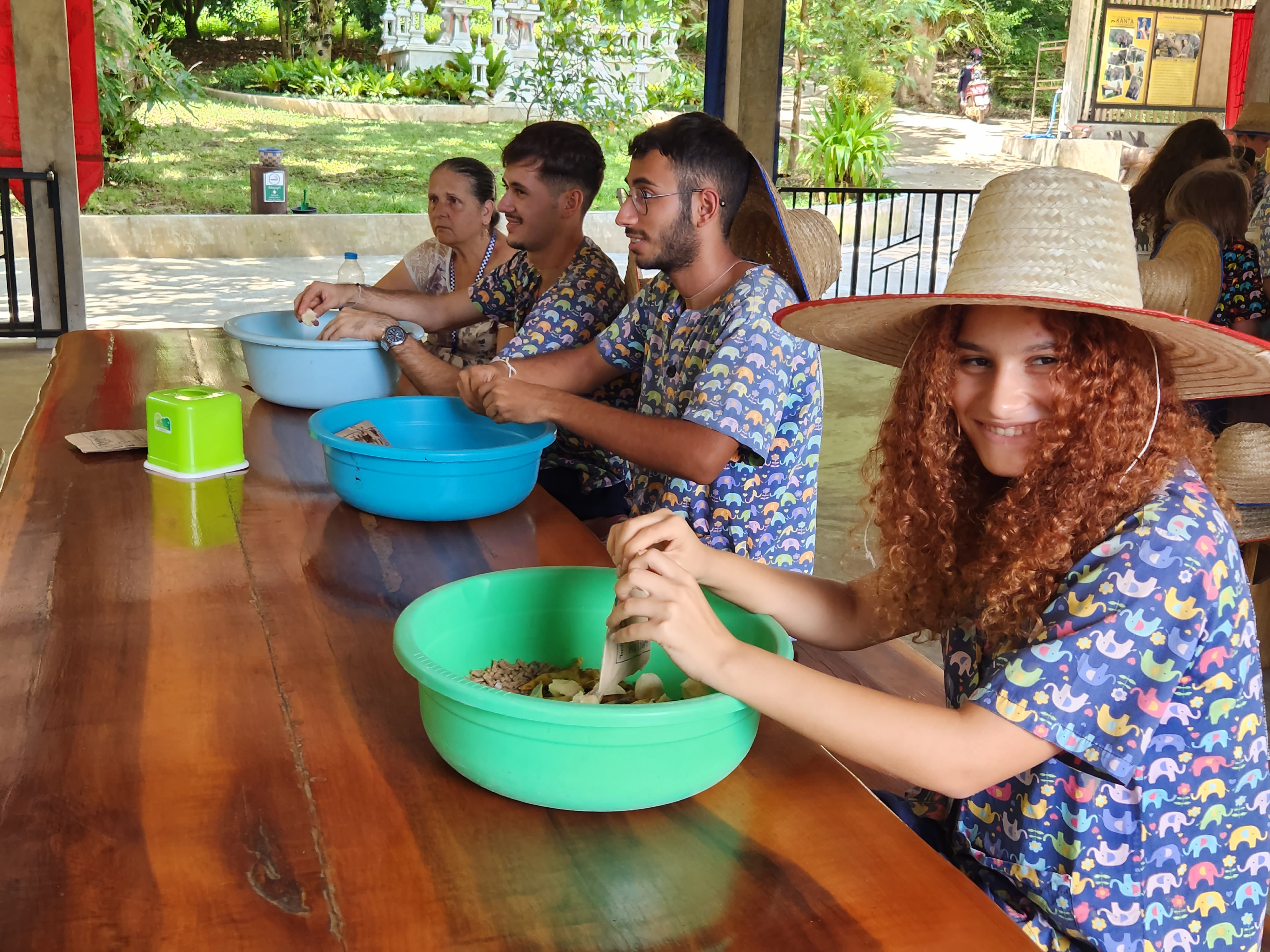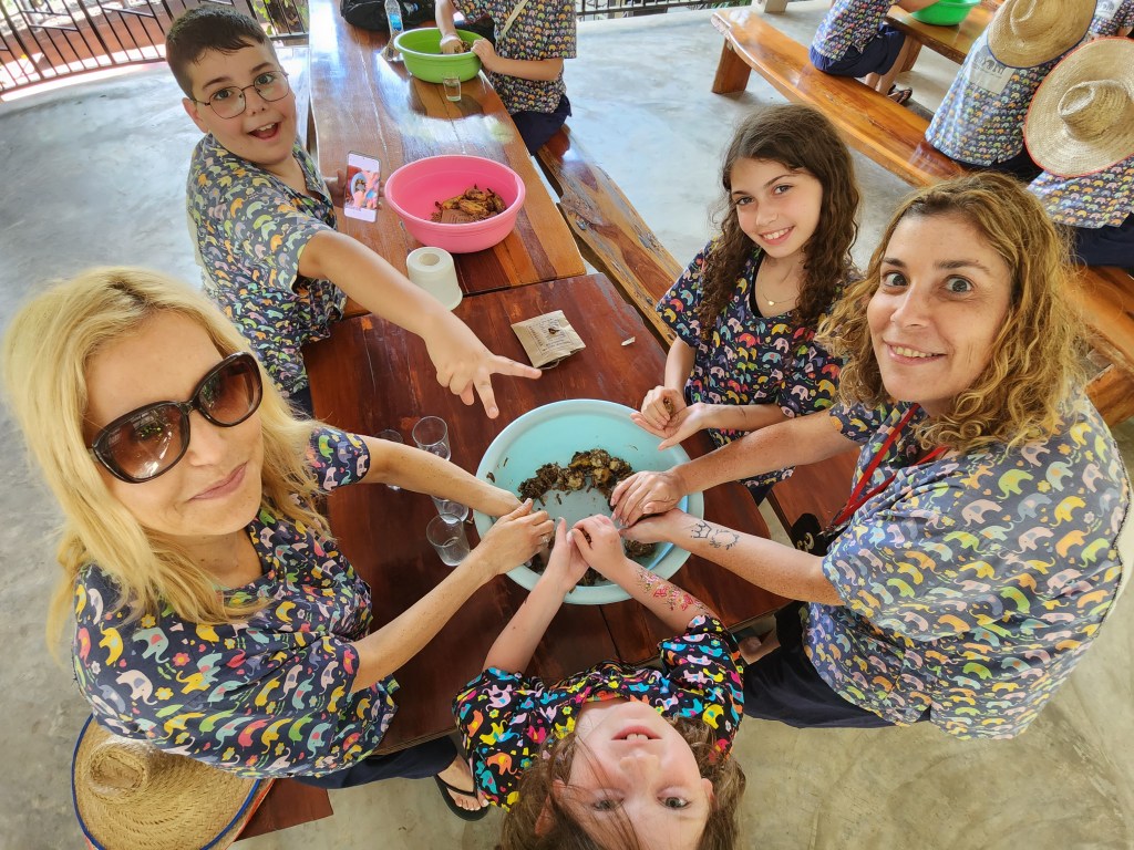 במהלך טיול המשפחות לתאילנד אנחנו מבקרים גם בחוות שיקום וטיפול בפילים. בשנים האחרונות חל שינוי וכיום כבר לא רוכבים על הפילים אלא מטפלים בהם. אל החווה אנחנו מגיעים בבוקר ולאחר שיחת הסבר ותדריך קצר נקבל מכנס וחולצה של החווה וגם לוקר בו נוכל להשאיר את התיקים והבגדים. לאחר החלפת הבגדים נתחיל בהכנת חטיפי בריאות וחלבונים לפילים בקערות גדולות בהם נערבב את כל החומרים ביחד עד שנגיע לתערובת טובה מהם נכין את קציצות הבריאות.