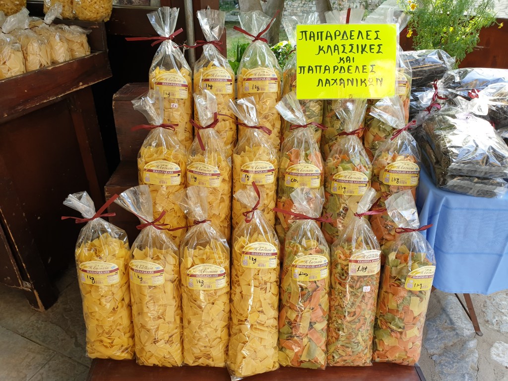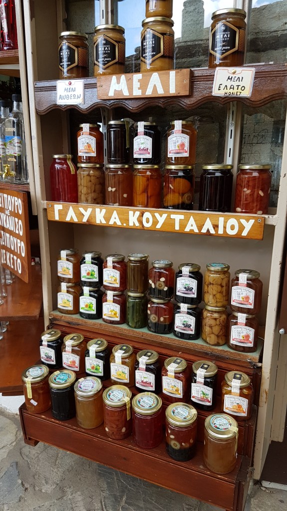 עוד נפגוש בדרכנו דוכנים רבים בהם תוצרת מקומית טעימה של ריבות וקונפיטורות, דבש, פסטות אשר נעשות בעבודת יד, אוזו (כמובן), צמחי תבלינים ומבחר רב של מתוקים.