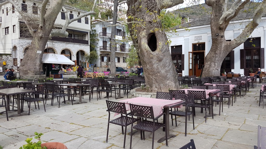כאשר נגיע לפלטיאה נראה את עץ הדולב הגדול המזדקר לו במרכז הכיכר ומסביבו בתי קפה עם נוף מרהיב עין. עץ הדולב הנמצא בכל כיכר מרכזית בכפר בהר פיליון מהווה מקור לגאווה ולתחרות בין כפרים סמוכים המתחרים בניהם למי יש (עץ) גדול יותר ועתיק יותר וזקני כל כפר נשבעים שהעץ שלהם הוא הכי עתיק בהר. כאן בכפר מקרניצה גזע העץ העתיק והגדול שיש הטוענים כי גילו הוא מעל 600 שנים הוא חלול ושרוף, כנראה עקב פגיעת ברק בעבר. אז זה הזמן להתיישב באחד מהשולחנות בכיכר ולשתות הלניק קופי (קפה יווני), וחלילה לא לבקש קפה טורקי (המלצה שנכונה בכל יוון)…