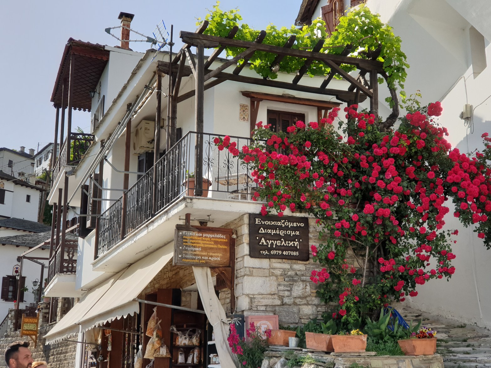 הכניסה לרחובות הכפר חסומה לרכבים, נלך ממגרש החנייה הממוקם בכניסה אל הרחוב המרכזי של הכפר ומשם אל עבר הכיכר המרכזית של הכפר, הפלטיאה. בדרך נראה סימטאות עם בתי אבן בעלי מראה של פעם מאבנים מסותתות השלובות האחד בשני ואנשים מבוגרים בלבוש מסורתי.