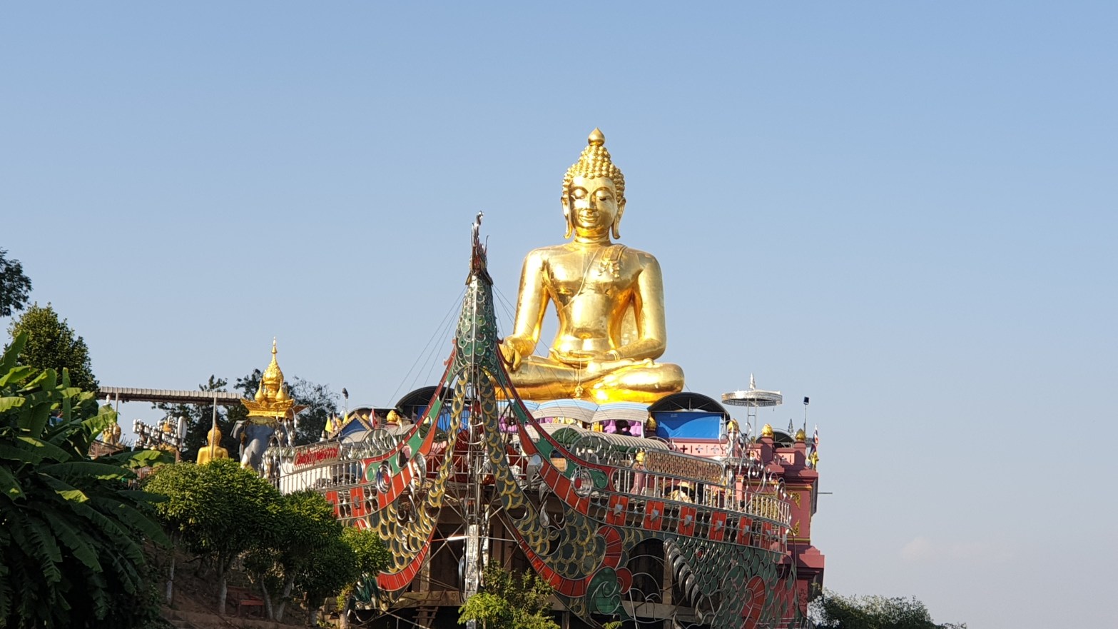 בביקורנו באזור משולש הזהב לא נוכל שלא להבחין באחד מהסמלים הידועים של האזור והוא פסל הבודהה הגדול והנראה למרחקים העשוי זהב והשוכן על גדת נהר המקונג. מקרבת פסל הבודהה הגדול נוכל לבצע קפיצה קצרה ללאוס למסע קניות קצר בסיוע אחת מהסירות על נהר המקונג הגדול, באי דונסאו נוכל לרכוש תיקים של מעצבי על (מזוייפים כמובן), בקבוקי ויסקי עם תוספת של נחשים ועקרבים, שלל משחות ועוד מזכרות מסוגים שונים.