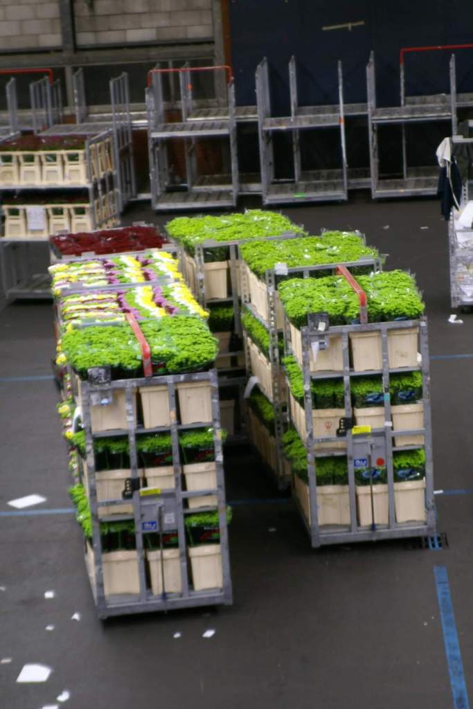 עשרות העובדים מתרוצצים במהירות ברחבי ההאנגר רחב הידיים, במה שנראה ממבט ראשון ככאוס אחד גדול אך בעצם מאורגן ומנוהל להפליא. העובדים מכינים את המשלוחים אשר נרכשו באולמות המסחר ומובילים אלפי ארגזים של פרחים מרהיבים בכל צבעי הקשת בתזמון מדויק, באמצעות טרקטורים קטנים אליהם רתומות שורות ארוכות של עגלות בהם עשרות סוגי ומיני צמחים ופרחים.